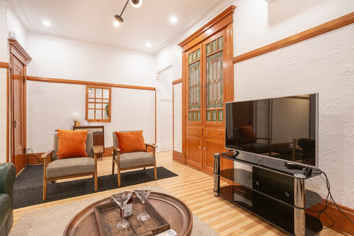 3 bedrooms, 2 baths, keyless entry, "Le Gite Balconville," certified by Tourisme Quebec, 297133. Included: AC, fiber internet, Roku streaming stick, front load W/D, sustainable tourism, the best neighborhood, really. All you need is steps away: public transit, Bring Your Own Wine restos, bars, and shopping. Enjoy a real Montreal neighbourhood, with family-owned shops, nightlife and restaurants, plus only 7 minutes to the mountain!