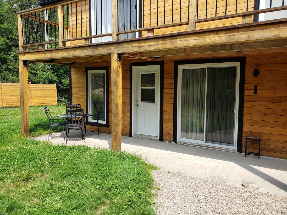 Le Studio (#1) possède une cuisinette (micro-ondes, mini réfrigérateur & four grille-pain), une chambre à coucher et une salle de bain privé complète. Le DEN de Tremblant offre au total deux chambres et un studio. Tous avec une entrée extérieure privée et le petit déjeuner inclus dans le mini-frigo. Accès wifi, câble, espace de stationnement et au bain tourbillon extérieur. Le service de massothérapie est offert sur place ($). (CITQ # 222054).