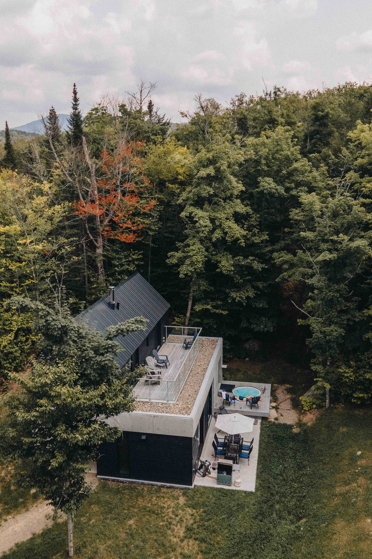 Profitez de l'effet apaisant de la nature en séjournant dans ce chalet contemporain à fenestration abondante en plein coeur de la forêt. Tremblant est magnifique, peu importe la saison. Destination plein air de rêve, vous serez à 8 minutes du Mont-Blanc et 20 minutes du Mont Tremblant. Que ce soit pour la randonnée, le ski de fonds, la raquette ou la motoneige, des sentiers sont accessibles facilement dans toutes les directions. Sans oublier le célèbre P'tit Train du Nord à 3 minutes de route.