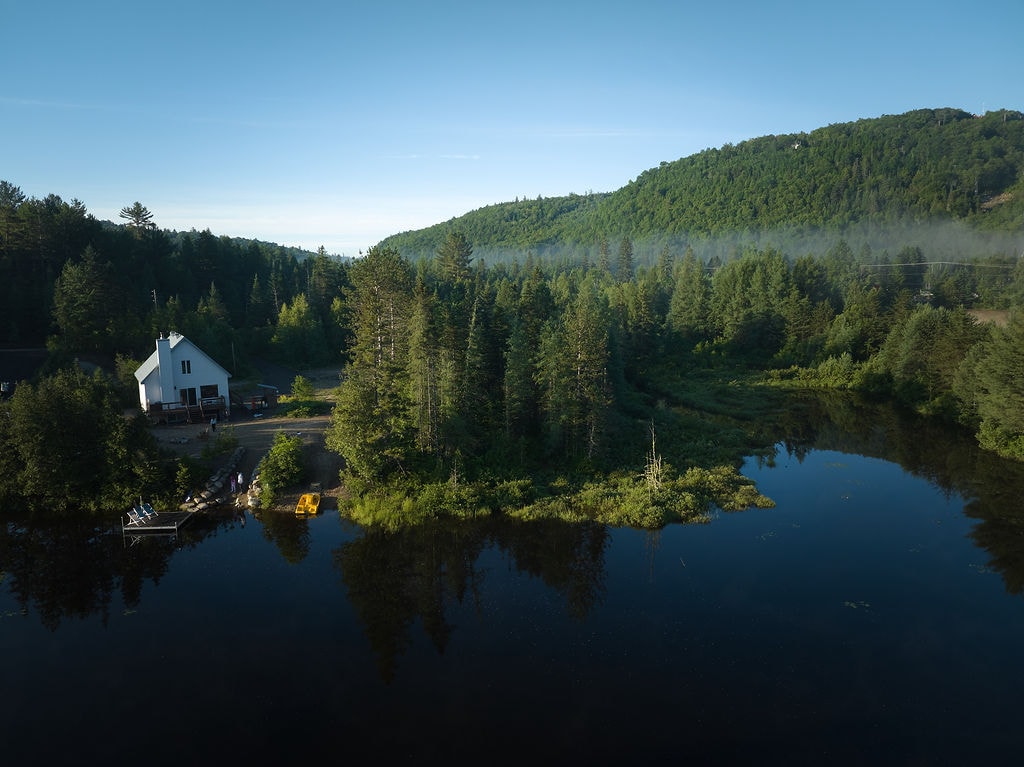 Chalet design au bord d’une rivière paisible, tubes de neige pour glisser,magnifique vue sur la montagne. À15 min du Spa La Source, du ski montcalm, de la tournées des cantons 🎿🥾 et d’Arbraska Rawdon. Idéal pour deux familles avec étages séparés. MAX 6 adultes, Parfait pour jeunes enfants (bien équipé). Très grand terrain intime, foyer intérieur/extérieur, hamac intérieur suspendu, tubes de neige, cinéma 🏠. Endroit calme (un seul voisin) avec Wi-Fii. Soucis du détails