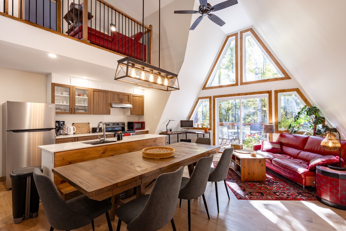 Profitez de l'effet apaisant de la nature en séjournant dans ce chalet contemporain à fenestration abondante en plein coeur de la forêt. Tremblant est magnifique, peu importe la saison. Destination plein air de rêve, vous serez à 8 minutes du Mont-Blanc et 20 minutes du Mont Tremblant. Que ce soit pour la randonnée, le ski de fonds, la raquette ou la motoneige, des sentiers sont accessibles facilement dans toutes les directions. Sans oublier le célèbre P'tit Train du Nord à 3 minutes de route.