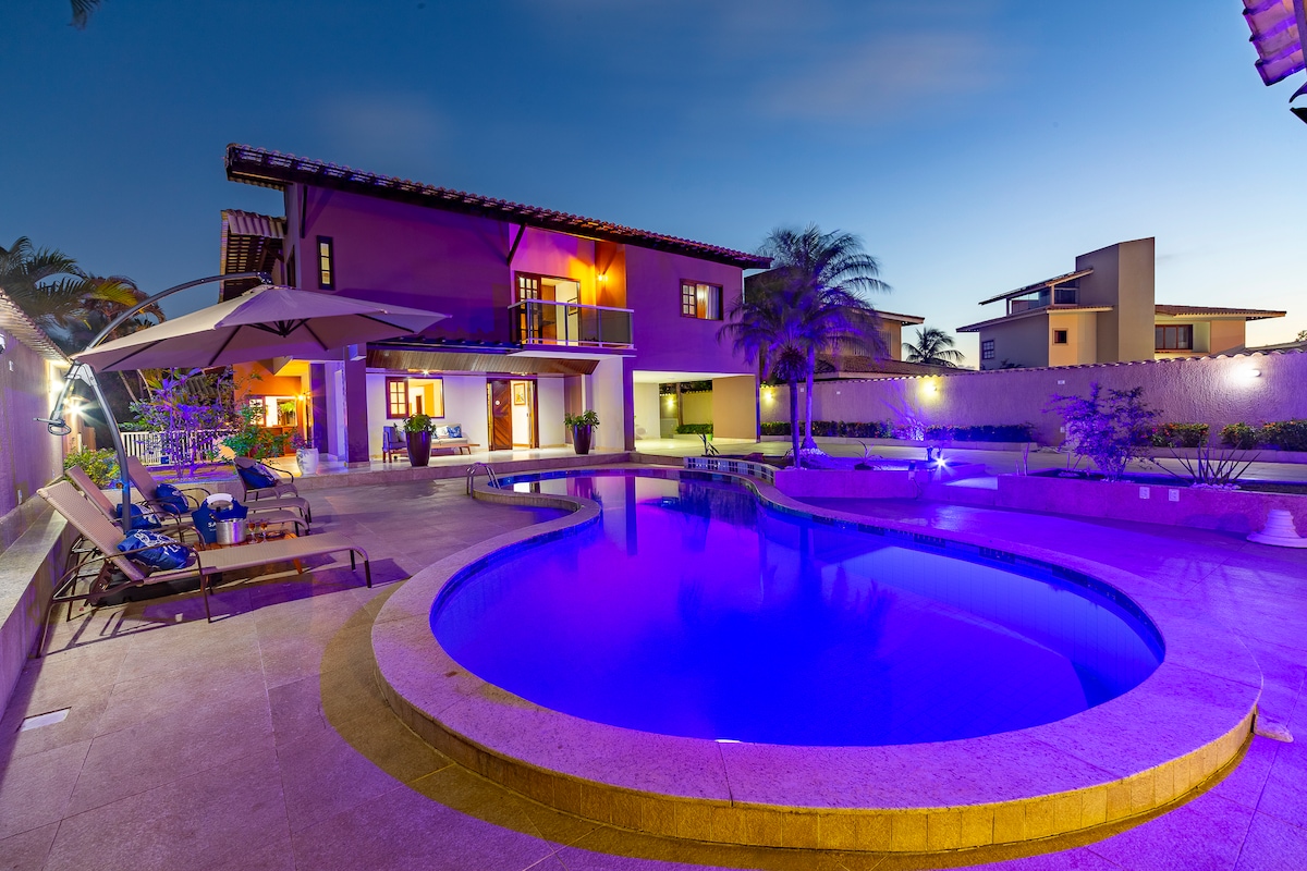 Suíte de hóspedes (edícula) com decoração moderna, Smart TV de 46” com apps de streaming, ar condicionado, bancada para computador com cadeira e tomadas. Banheiro espaçoso com ducha aquecida e armário. Piscina acessível com corrimão e barra. Área gourmet. Acesso por corredor lateral sem passar por dentro da casa principal. A 1km das lindas praias de Vilas do Atlântico e Buraquinho! Atenção: essa é a casa de hóspedes somente, para casa inteira acesse https://www.airbnb.com/slink/K1WaTVLr