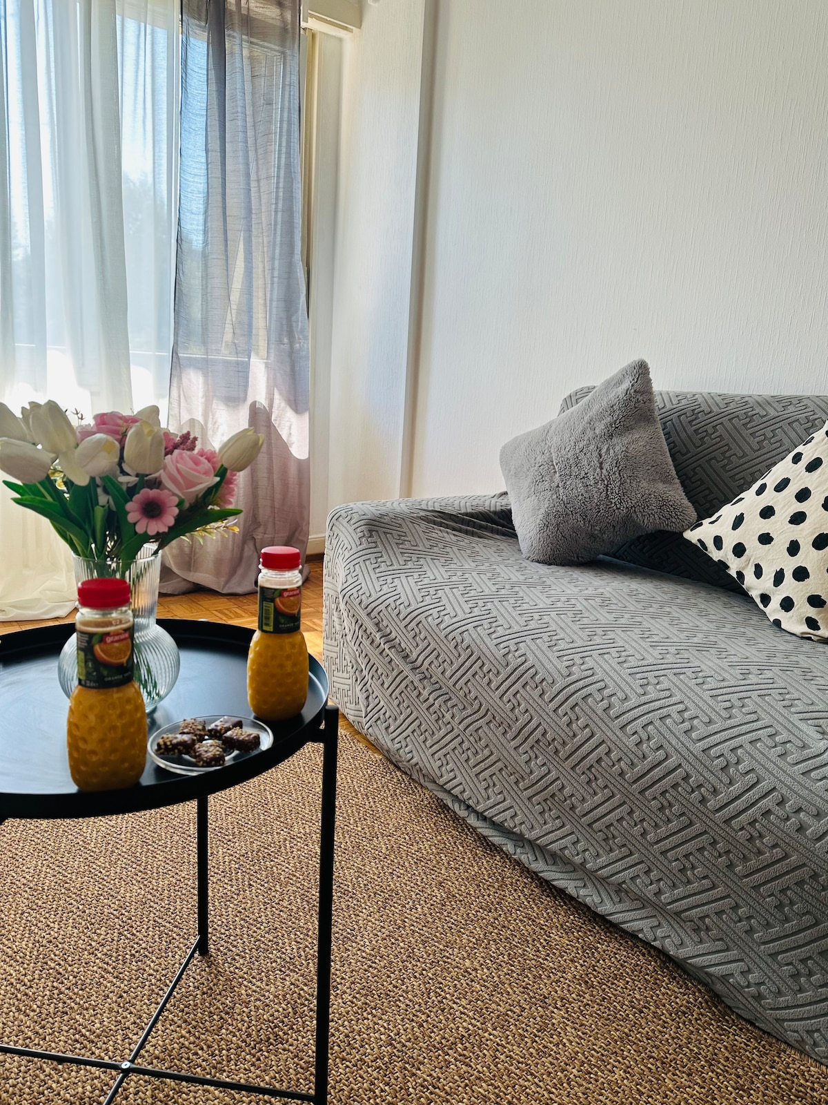 Parfait pour les familles ainsi que que couples d’amis, notre appartement bénéficie d’une surface large permettant aux occupants d’avoir leur intimité sans se marcher dessus. Il y’a deux grandes chambres, un espace canapé TV, une salle à manger, deux balcons vue sur montage et lac, et un bureau. La proximité des transports publics et le parking privé en bas de l’immeuble sont des atouts rares. L’appartement est au centre-ville: arrêt de bus à 5 m, 2 min du métro et 10 min à pieds de la Gare.