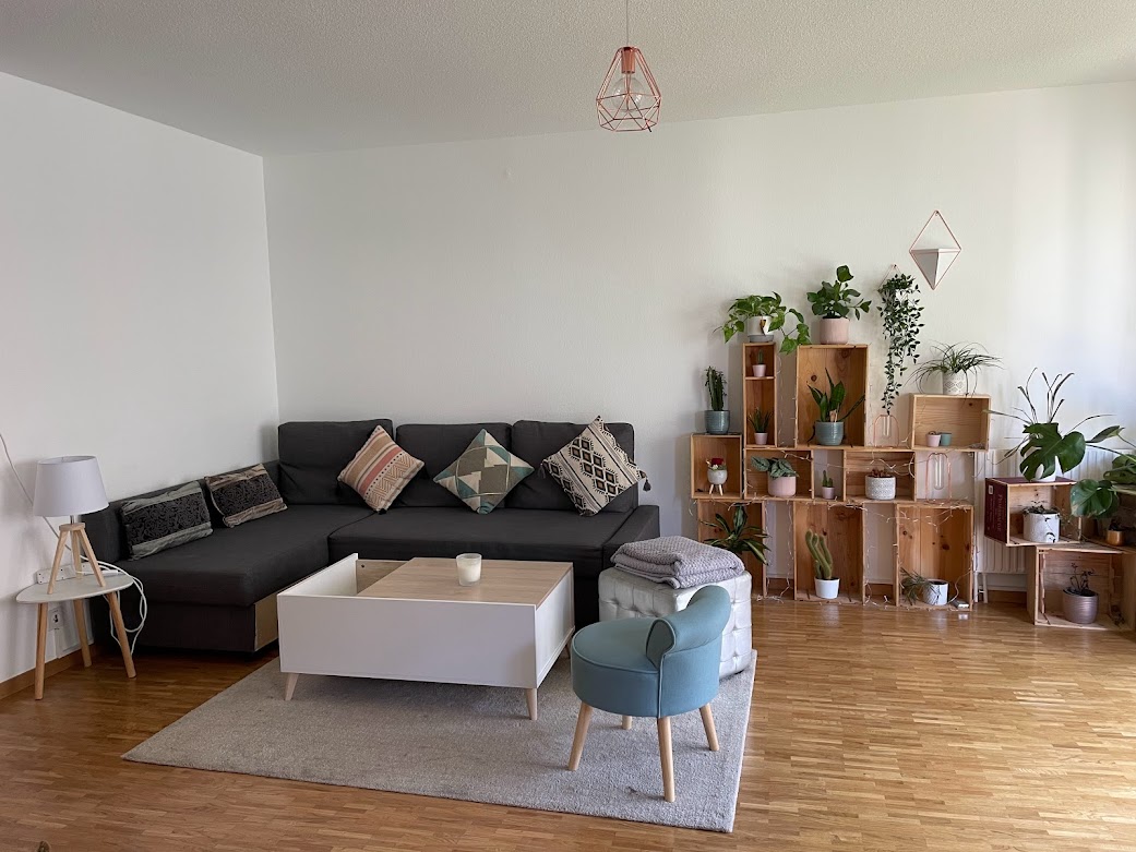 Ideal for leisure/work, for a single, couples or small families. Sleeps 2, with an option for a 3rd on the sofa in the living room. The flat is peaceful, 10 min. in bus from the city center, or 5 min. away from the lake shore. Spacious, sunny all day and noise free. There is no private parking for this property. Blue parking places are available around building and 24/7 parking is available within 7-10 min. on foot from the premises for 8CHF/day. Detailed information upon reservation.