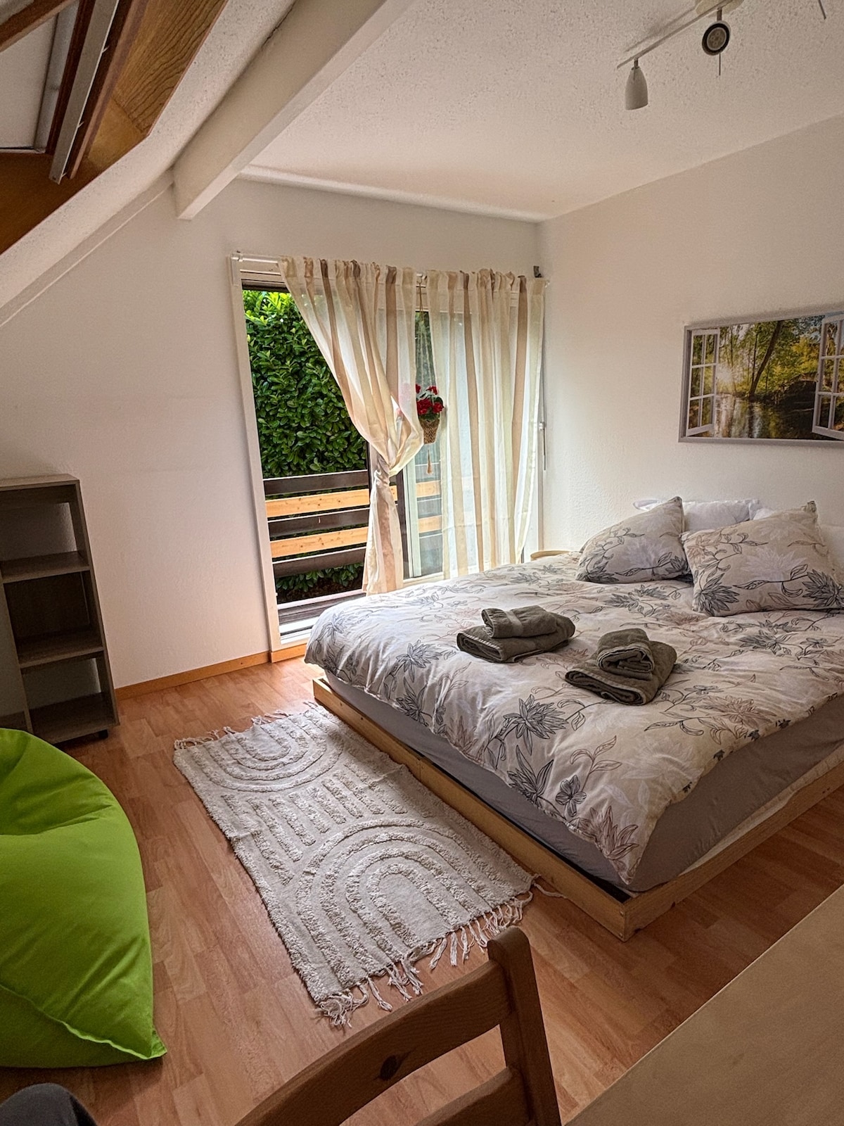 Enjoy a stylish experience at this centrally-located place very close to the station. You will appreciate its proximity to the lake and the city center. The apartment is located in a very quiet street, close to grocery stores, the new museum plaza, cafes and restaurants. It features a large living room, an open and fully equipped kitchen, 2 bathrooms, 2 bedrooms (1 with double bed and one child room) and a balcony. You can also use the outdoor parking space and the garden.