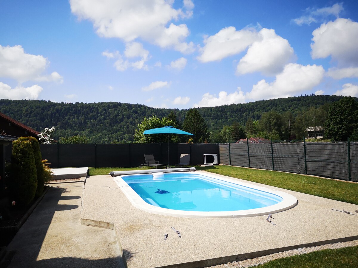 Appartement neuf, rénover avec goût, tout confort, une vue magnifique sur les sapins et vallée du massif Jurassien vous attend. Vous avez besoin de calme ? de serinité ? ou peut être, vous ressourcez ? La terrace orienté plein sud et son petit terrain vous attend. Idéalement situé vous pourrez profiter des pistes de ski, de superbes randonnées pédestres, idéal pour la pratique du vtt toute discipline, la pêche en lac à st Point , visite de fruitière a comté, dégustation de fondue du haut doubs.