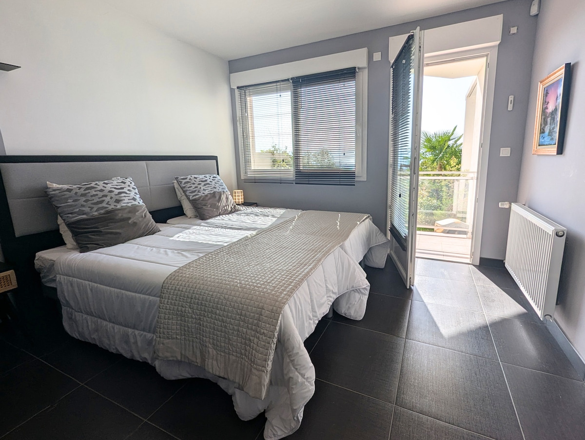 别墅内的单间公寓,带花园,靠近湖泊,温泉