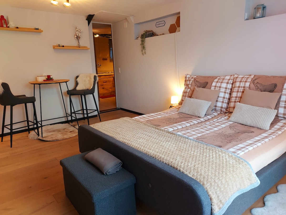 A charming studio for 2 guests (+2 upon small fee), breakfast incl., nestled in a snug chalet in the stunning Alps, just 25 min. from Vevey, Montreux, the dazzling Lake Geneva, and also from the iconic Gruyere spot. Whether you're here to hit the slopes, chill-out, or explore the outdoors, adventure is everywhere: hiking (snow-shoes in winter), biking, horse riding, or unwinding in a luxurious thermal bath. And for foodies? The local specialties are a must ! Your romantic retreat is waiting !