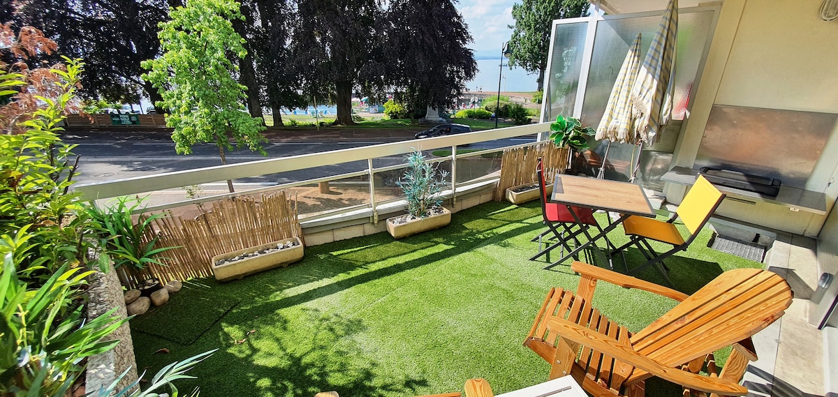 Marre des plages bondés de monde ? Profitez sereinement de vos vacances dans cet appartement unique, T2 refait à neuf avec parking privé. Véritable pied dans l'eau, vous bénéficiez d'une vue imprenable sur le lac Léman et il n'y a qu'à descendre les marches pour profiter du lac et des deux pontons qui sont réservés à la copropriété, idéal pour observer le spectacle continue du lac et de sa faune Situé à 7 min de Evian-les-bains, 15 min des pistes de ski de Thollon-les-mémises et de la Suisse.