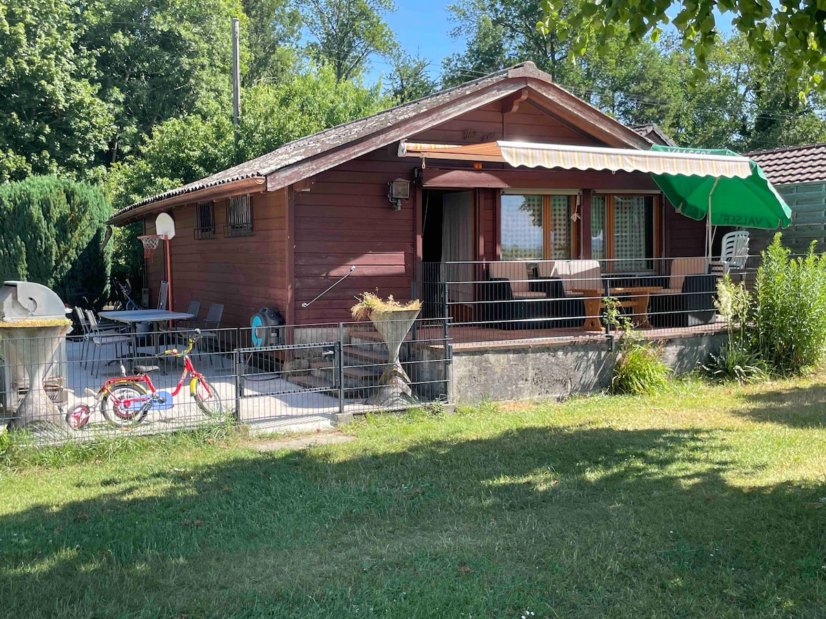 Chalet avec vue splendide sur les montagnes suisse et lac de Thoune à environ 900 mètres d'altitude dans la région de l'Oberland bernois Un jardin clos et 2 grande terrasse panoramique 1 haute ou vous pouvez manger faire manger faire un barbecue, prendre votre petit déjeuner, dîner en admirant la splendide vue ainsi qu'à l'intérieur dans la salle à manger au niveau de la chambre ou vous pourrez profiter de chaise longues et d'un whirlpool avec musique