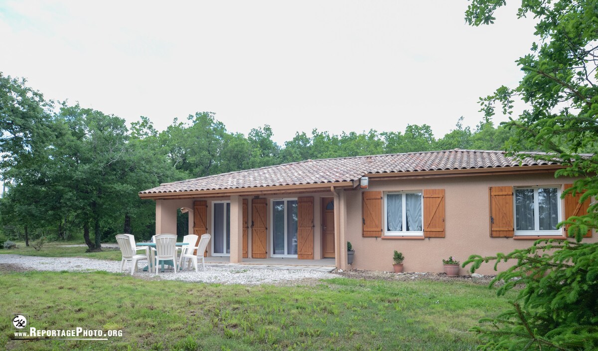 Chalet en bois dans la verdure, lieu insolite, entouré de ses chemins de randonnées et de ses bastides. Chalet tout équipé avec terrasse semi couverte meublée, Plancha... 1 séjour cuisine avec coin couchage + 1 salle de bain avec toilettes écologiques. 20m2 + terrasse 18 m2. Site très agréable dans la campagne à 500 m du village avec ses commerces à partie de 35 € la nuit. Contact uniquement par téléphone