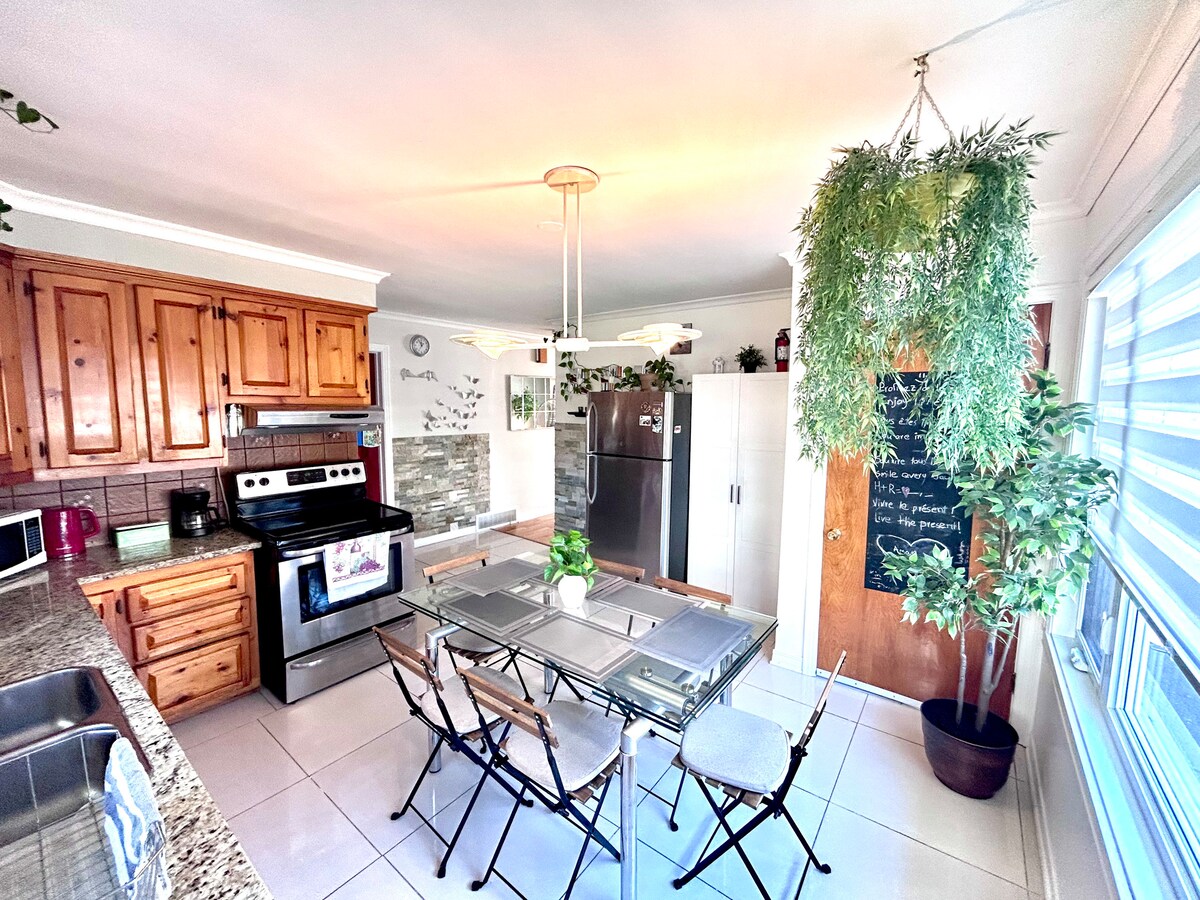¡Relax in a cozy, spacious home located in a safe and quiet residential neighborhood! ¡Just a few steps from Montreal's Cartier Metro station! 🛏️ Comfortable and clean accommodation 📶 High-speed Wi-Fi & smart TVs in every room 🧺 Washer and dryer available for your convenience 🍽️ Fully equipped with everything you need for a pleasant stay Whether you're here for business or leisure, you'll feel right at home!