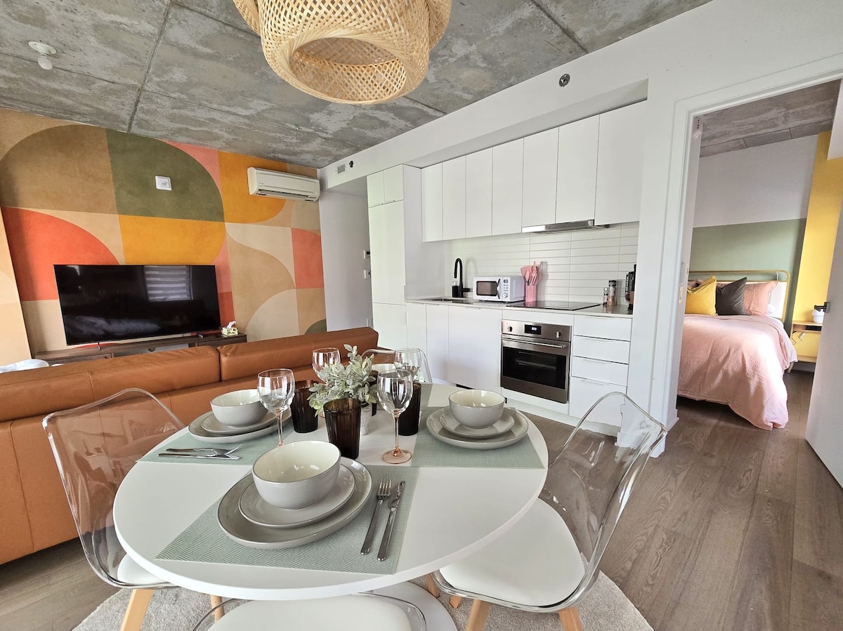 Welcome to our stylish 1-bedroom unit in Little Italy, Montreal! Designed for comfort and convenience, our space is perfect for business travellers. Accessible by a common elevator in a well-maintained building, enjoy a charming atmosphere. Relax in a cozy queen-size bed, use the fully equipped kitchen, and unwind in the spacious bathroom and tub. Stay connected with free wifi, and Netflix, and enjoy a welcome starter amenity kit with fresh coffee and treats.