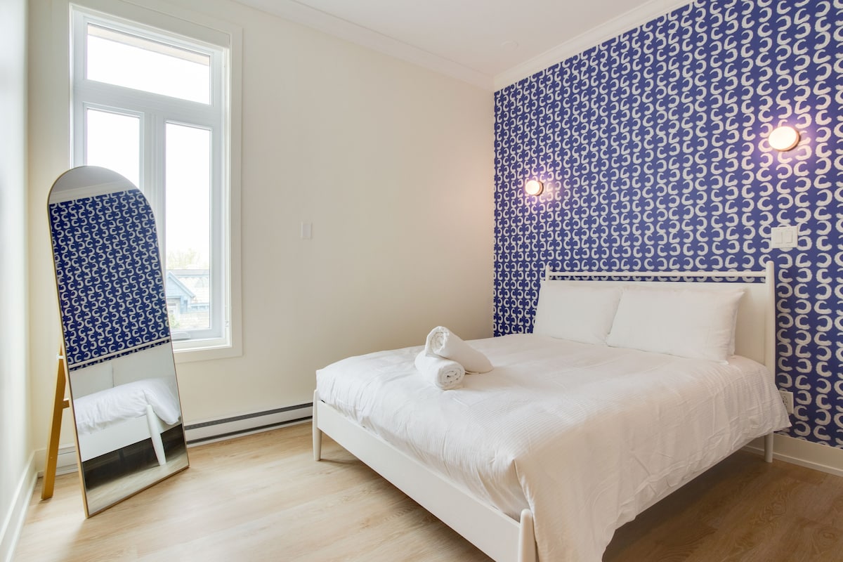 This elegant hotel room blends style and comfort, featuring a plush queen bed with premium linens. Located in one of Montreal’s most vibrant neighborhoods, you’re steps from cafés, bars, and cultural gems. Guests also enjoy access to a welcoming lobby lounge and a spacious basement with cozy seating, a pool table, and big-screen TV—perfect for work or relaxation.