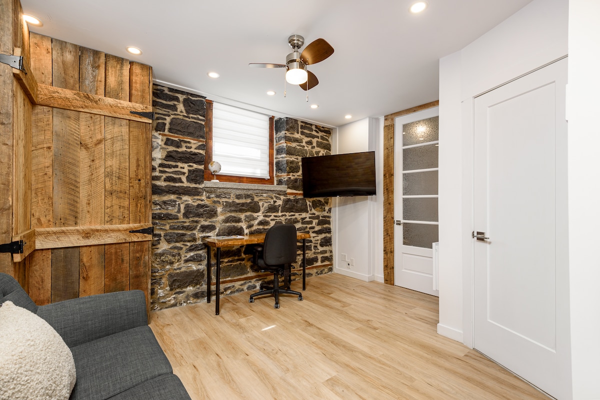 Superbe logement entier,avec entrée indépendante, il saura vous charmer. Bien situé au coeur de Terrebonne dans le Grand Montréal , proche des épiceries, restaurants et attractions,boisé à 2mn, terrain de golf, pistes cyclables et autres ,ce logement saura rendre votre séjour agreable. Appartement privé avec grande chambre et lit Queen, cuisine équipée, salon , tv avec amazon fire tv, laveuse-sécheuse , cour, stationnement disponible Autoroute 640 et 25 à proximité, autobus à 1mn de marche
