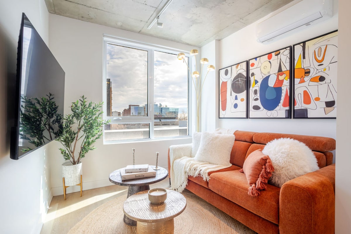 舒适宽敞的2卧室公寓,带健身房、停车场、DT和机场