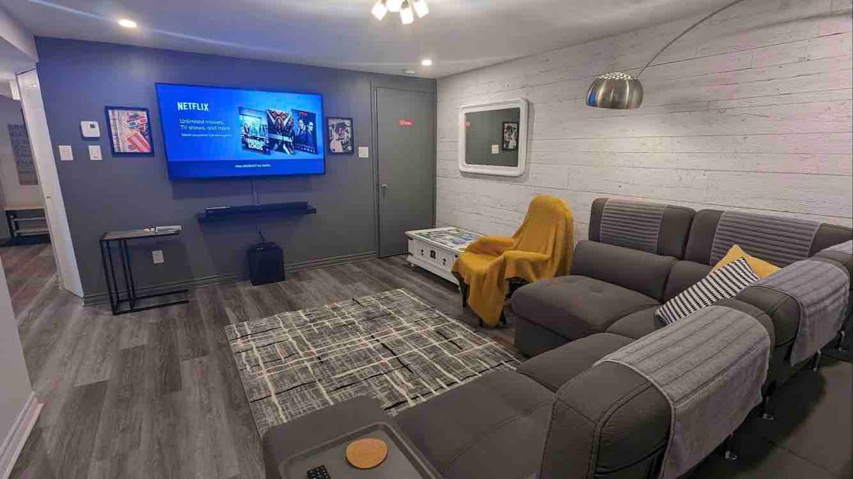 Soyez les bienvenus dans notre logement récemment rénové au sous sol de notre maison. Venez profiter d’un séjour riche en souvenirs et en expériences inoubliables. Vous aurez accès à une entrée et un grand stationnement privés avec une prise de courant extérieure pour voiture électrique. Un panier de Bienvenue vous sera offert.