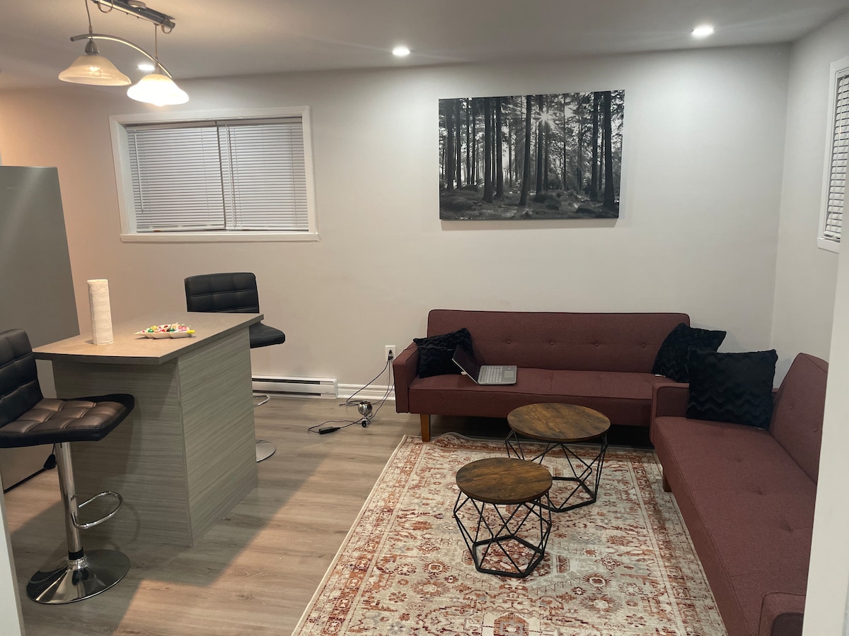 UPDATED 2024! This warm modern corner unit townhouse is perfect for your family Or professional. Furnished with High end furniture, blackout blinds, dimmers on all the lights and a fully functional kitchen with all cooking tools needed to make a great meal. Close to all amenities and 15 min from downtown Montreal. Backyard to a bike path and views of the the Saint-Laurence river.