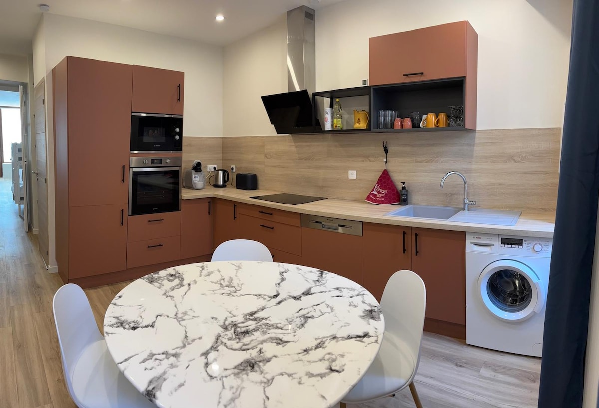 Soyez les heureux voyageurs à profiter en amoureux ou entre amis de ce nid douillet en plein cœur de La Mure d'Isère. Refait entièrement à neuf, ce charmant appartement calme et bien agencé vous offrira tout le confort nécessaire pour un agréable séjour. Il est composé : D'une cuisine entièrement équipée (voir équipement) D'un salon avec TV et internet wifi D'une chambre avec lit en 140 Wc + Salle de bain entièrement rénovés