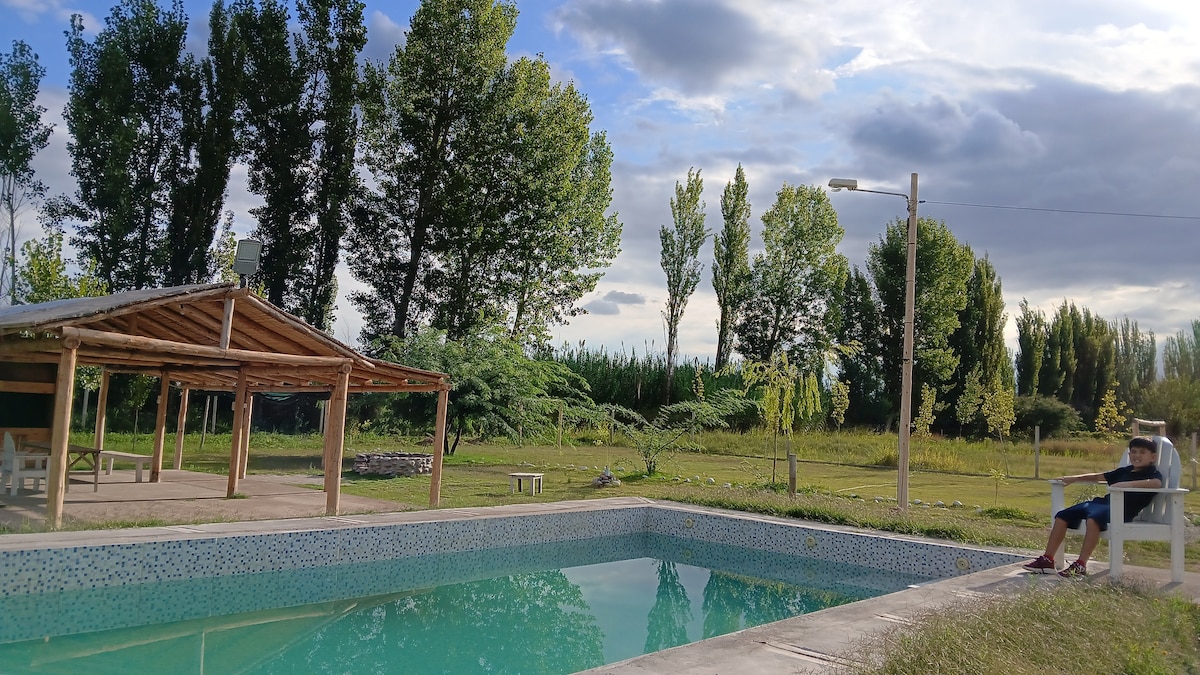 Te invitamos a transformar todas las emociones , en una casa rural donde el sol trae armonía y la noche melodia de Grillos que te invitan a abrir el corazón. Tenemos pileta, olivos, mentas, Nogales , almendros , ciruelos y almendros. Ofrecemos servicio de alimentos y bebidas de Kutun Mendoza Filosofia de vida saludable , podrán experimentar y comprar desayunos saludables y productos regionales y orgánico como vino, aceite de oliva , mermeladas y miel.