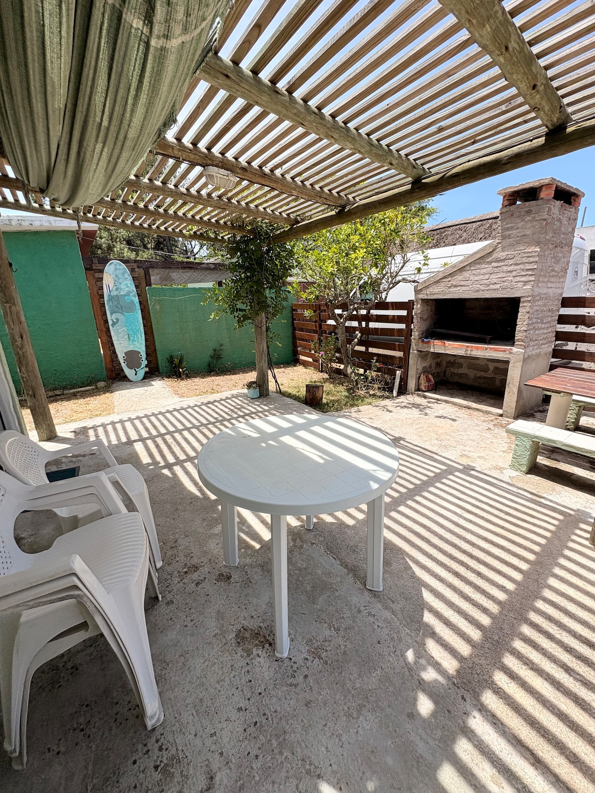 Hermosa casa de playa con gran parrillero y deck con pérgola techada, ubicada a solo 600 mts del mar. Quincho de 70 m² en 2 niveles, con baño y cocina equipada. Dormitorio principal con cama matrimonial, dormitorio secundario con cama marinera, entrepiso para disponer de colchones y sofa cama en planta baja. Servicios de agua potable y energía eléctrica incluidos. Perímetro cercado. Un espacio cómodo y funcional para disfrutar con familia y amigos a pasos de la playa.