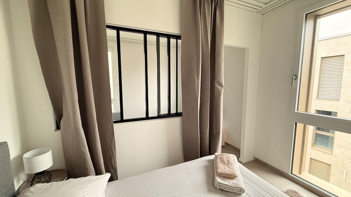 Spacious and modern apartment located 12 minutes from Lausanne city center. Very quiet residential area, 2 minutes from the metro. Large, bright living room and open kitchen with a balcony. View of the Alps and Lake Geneva. 75" TV. Office with a workstation and fitness equipment. A large master bedroom with a king-size memory foam bed. A second large bedroom with a queen-size bed. Two bathrooms (1 with a bathtub, 1 with a shower). A private covered parking space.
