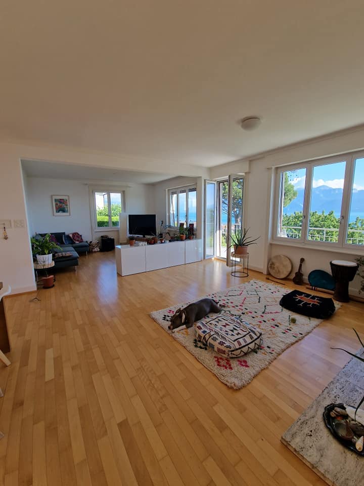 This confortable appartment has three bedrooms, a fully equiped kitchen, a large living & dining room with balcony, a bathroom, separat toilet and a large entrance. It offers a great view over the lake and the alps, it's close to the train and buss stations, and you've got a small shoppingcenter "Les Moulins" only a few minutes away (Coop, postoffice, bancomat, flower shop etc...). The beach, the harbour and the oldtown of Lutry is only a few footsteps away. A parkingplace is at your disposal