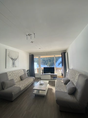 40m2 exposé Sud-Ouest : entrée, séjour cuisine, double-loggia vitré avec canapé, 1 chambre, lit double, simple, gigogne, 1salle de bain Idéal de 1 à 3 pers, poss 5 Situé dans une résidence très calme du secteur arboré Rocher du Cerf, à proximité des sentiers de rando-trails, 200m des pistes de ski/Vtt >Place de parking privée les moins du lieu : > Pas de cafetière > Draps et serviettes non fournis Pas de supplément ménage mais je vous serais reconnaissante de laisser l appart rangé etpropre