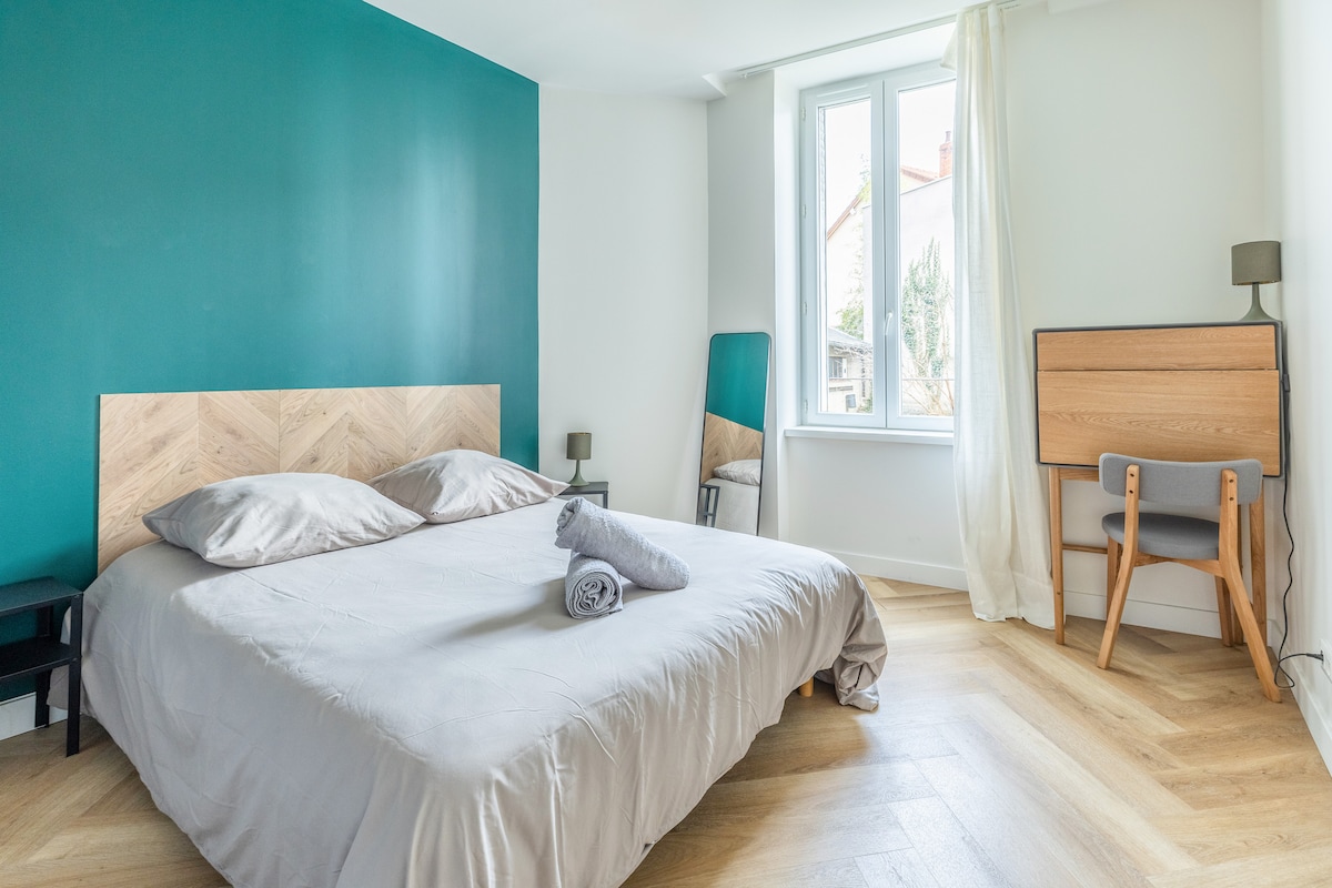 🔎 A la recherche d'un studio entièrement rénové en 2025, équipé à neuf et idéal pour séjourner sur Clermont-Ferrand ? ↪️ Notre studio volcanique est fait pour vous ! 🚗 Vous venez en voiture ? ↪️ Profitez de notre place de parking privative. 🚅 Vous voyagez en train ? ↪️ Marchez 5 minutes depuis la gare et vous êtes chez nous. 🌜 Vous arrivez tard ou ne connaissez pas votre horaire d'arrivée ? ↪️ Aucun souci avec notre serrure connectée qui vous permet d'être autonome 24h/24.
