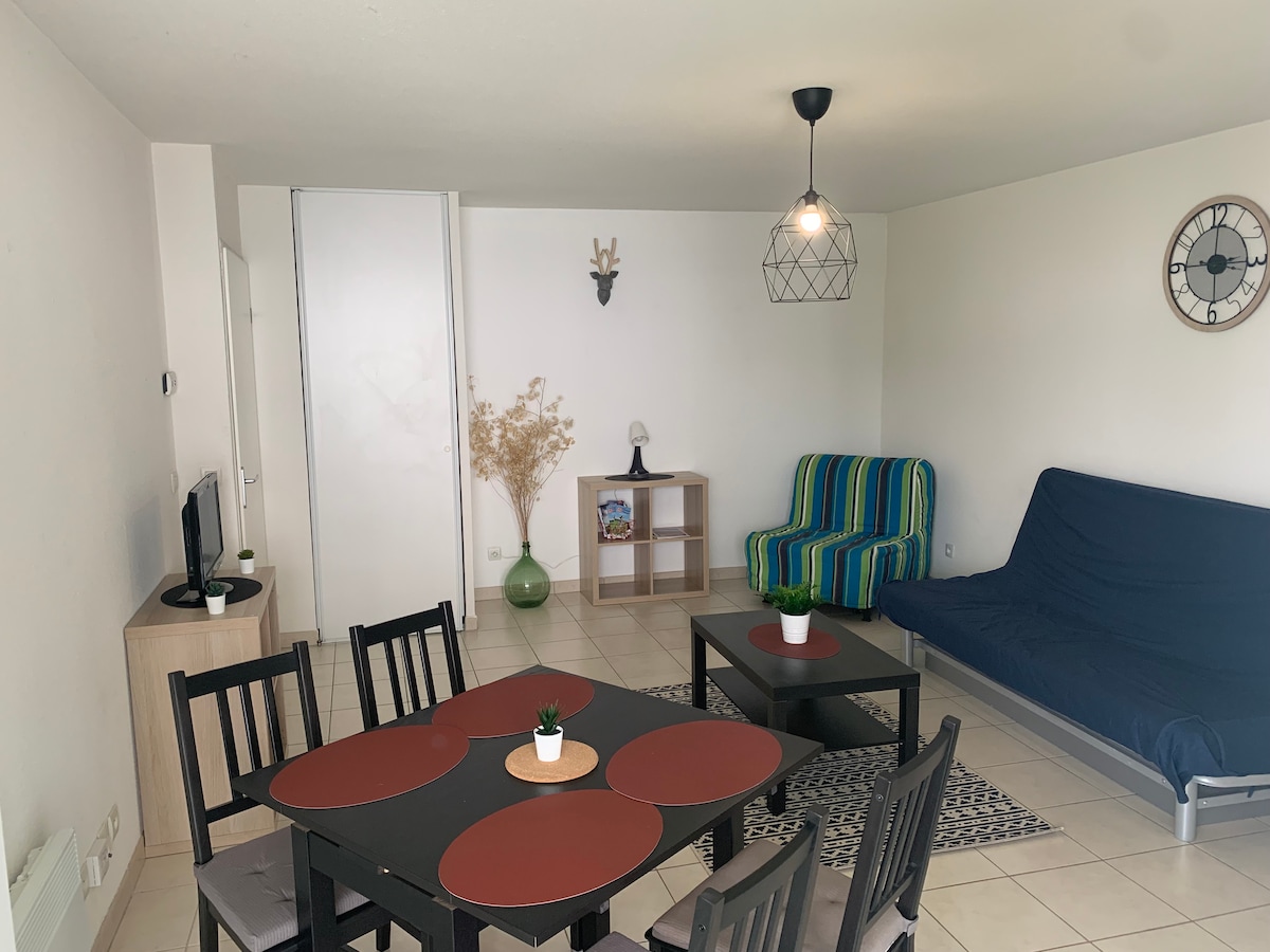 Appartement refait à neuf décoration cocooning ton beige et bleu pour la pièce principale . terrasse couverte privée .plancha piscine , Appartement pouvant acceuillir 4 personnes maximum, le tarif est par nuit et par personne. Ne pas manger et boire dans la chambre et sur le canapé . interdiction de fumer à l intérieur . Animaux non admis. toutes dégradations, casse ou vol sera déclaré à airbnb .l appartement n est pas adapté pour les personnes à mobilité réduite