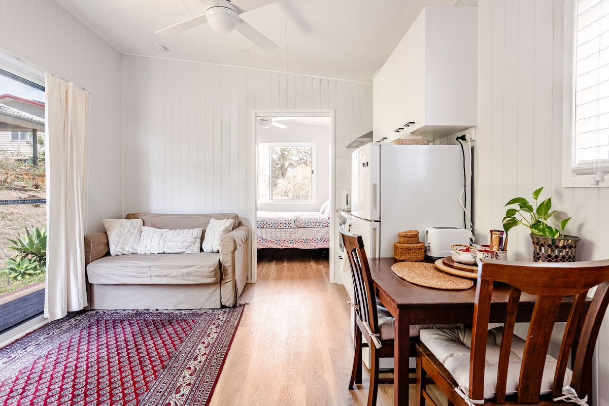 Positioned in a quiet cul-de-sac this tiny house offers everything. Modern completely self contained tiny house with own private access and off road parking. Private deck with access to the large swimming pool. Just a few minutes drive to the Bruce Highway, North Lakes Westfield (Ikea and Costco) and North Lakes Medical precinct. 20 mins from airport, 40mins to Sunshine Coast, 60mins to Gold Coast. 10 minute walk to the railway station for direct travel to Brisbane City or Redcliffe.