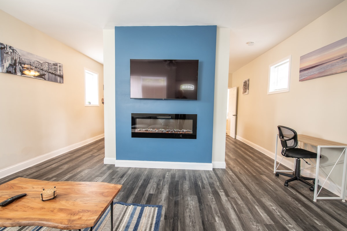 This newly constructed in-law suite offers cozy and clean comfort. It's 250-square feet of space but perfectly laid out so everything you need is there without feeling crowded. Many of our guests come for a quiet and relaxing weekend or to work remotely in a cozy spot. We live in the attached house but the space you are renting is completely private--with a private entrance and no shared spaces. There is a brick wall between the spaces so we won't hear you and you won't hear us!