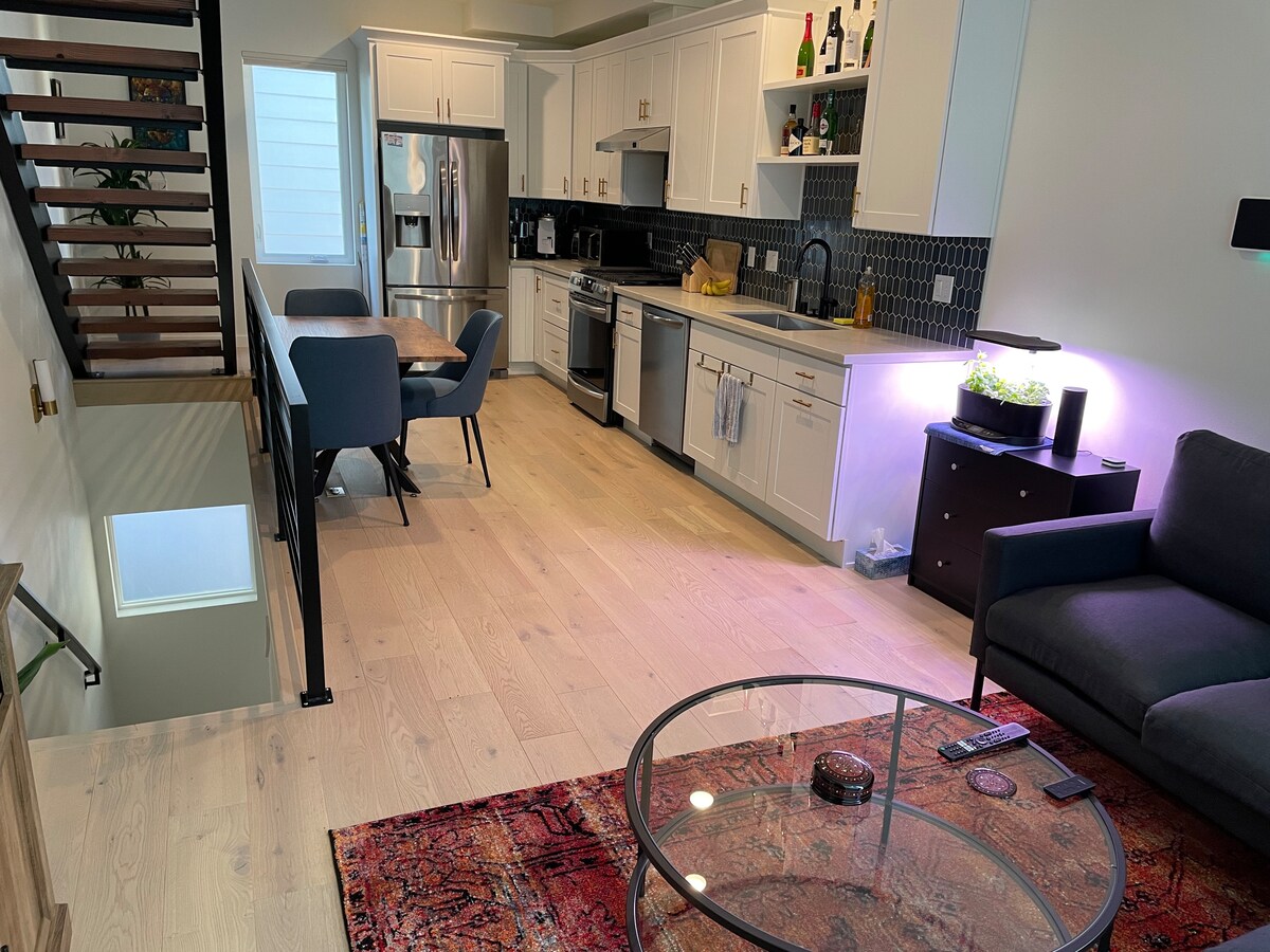 Our cottage has an open loft style floor plan. Spacious, quiet, and light filled. 1.5 baths and 2 stories. Modern and elegant finishes on everything. Main floor has 1/2 bath off kitchen, and there is a full bathroom with shower near the bed located upstairs. It is a stand alone “guest house” in the back yard of the main house. Private parking right in front of the front door! Yard has fire pit, outdoor furniture and BBQ. A hidden oasis, right in the middle of the Ballard neighborhood.