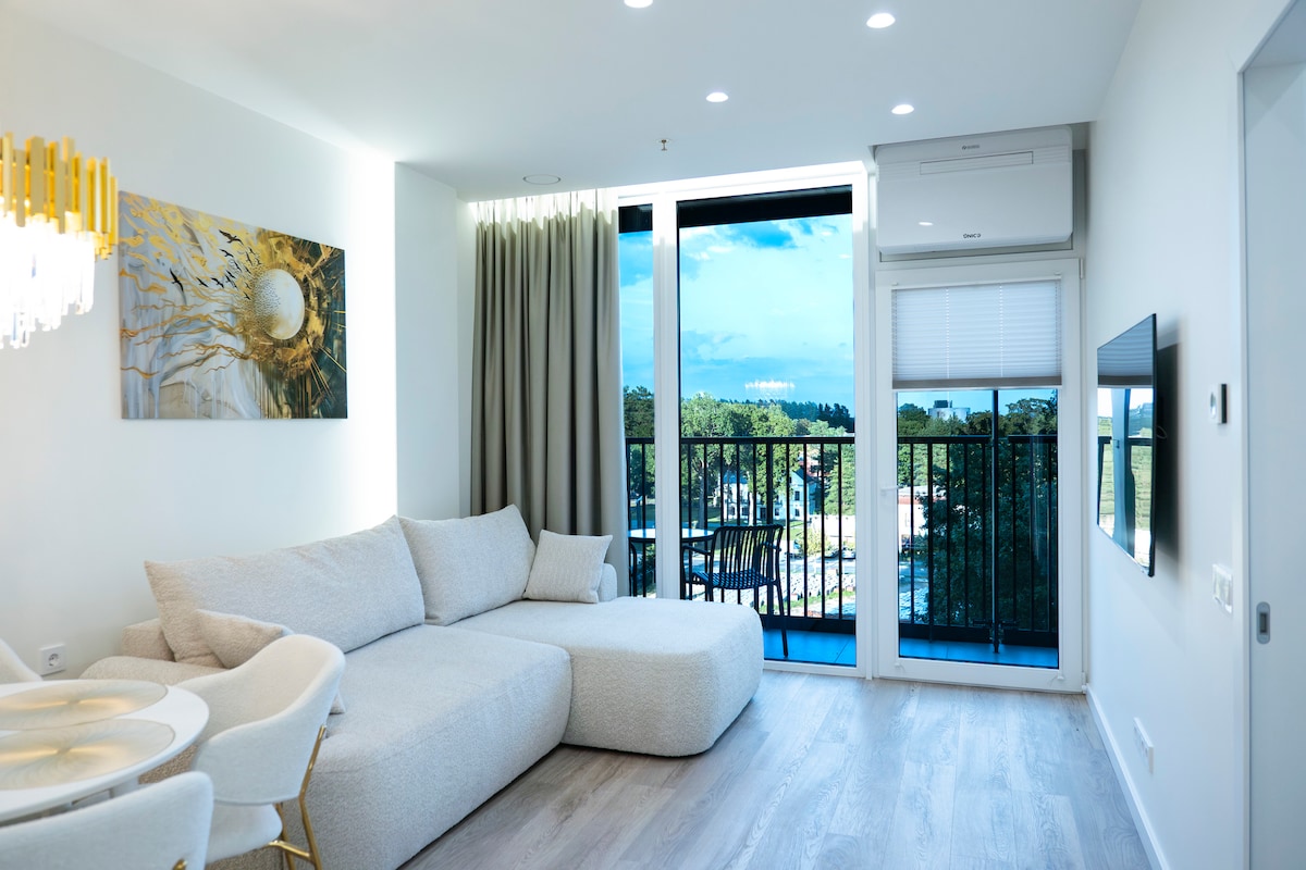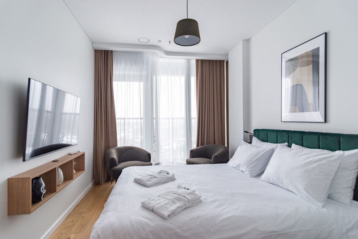 全景单间公寓Sky – 带阳台、健身房和桑拿房