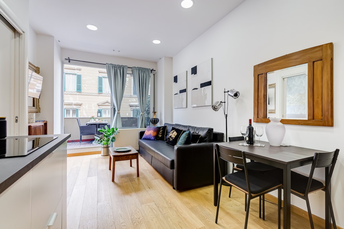 Welcome to Cancelleria apartment, located in the heart of Rome's historic center! This newly renovated flat offers a unique blend of modern comfort and historical charm. What you will love: - Unbeatable location overlooking Palazzo della Cancelleria, Rome’s most beautiful renaissance palace, built by Bramante(1486 AD) - Fully renovated in 2024, featuring upscale contemporary decor - King bed (180x200cm) & sofa bed w/20cm mattress for highest comfort - Original wood ceiling dating back centuries