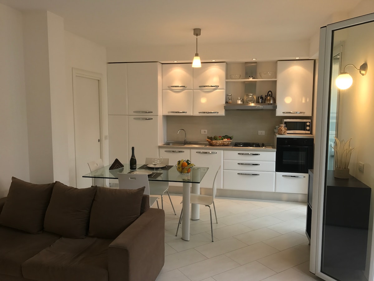Ground floor loft in the central area 5 minutes walk from the station. It has a habitable outdoor patio. Fully equipped kitchen, TV with Internet channels (Netflix, Prime, etc.). Large outdoor area, also covered, can also be used to park bicycles. Pet Friendly. Agreements with local restaurants. Ability to create customized packs to better enjoy the city, the surroundings and our wonderful sea. Free pass to parking