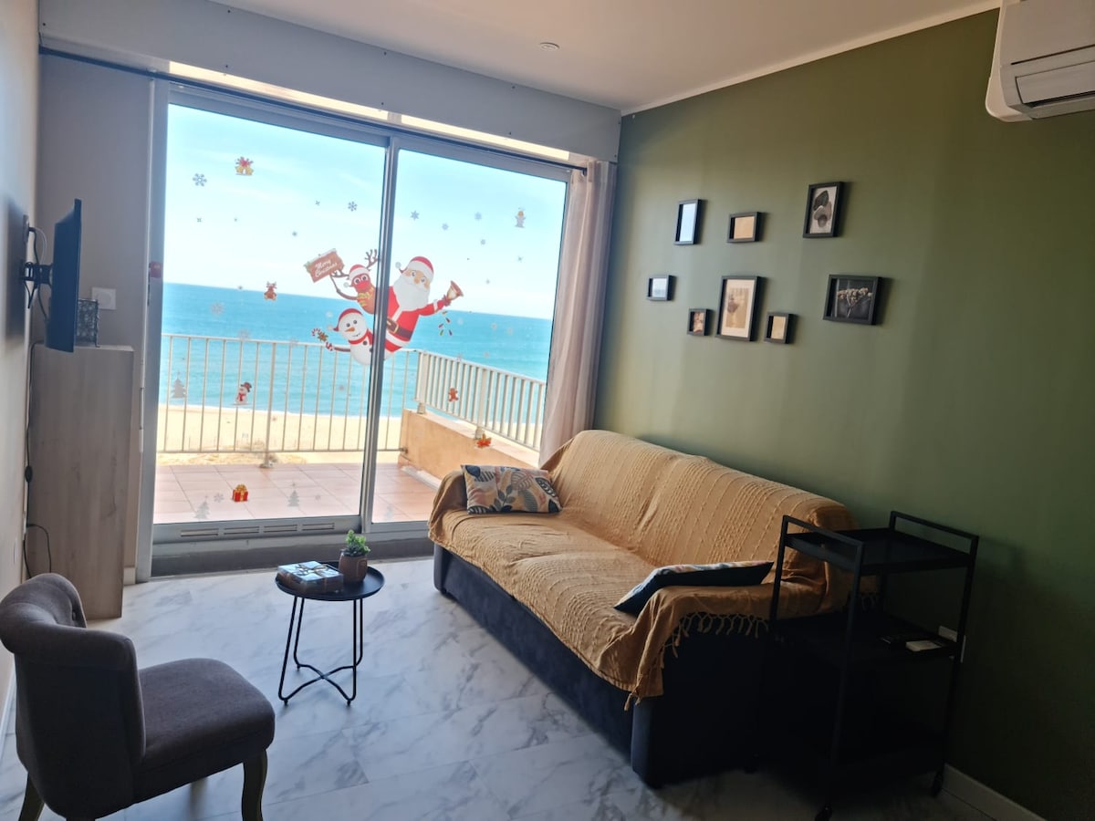 Bienvenue dans notre charmant appartement de 2 pièces très lumineux et design, avec sa terrasse face à la mer. Parfait pour un séjour relaxant en couple, en famille ou entre amis, cet appartement peut accueillir jusqu'à 4 personnes. • Wi-Fi / Clim • Cuisine équipée • Séjour lumineux avec smart tv et canapé-lit confortable • Chambre avec un lit double (140x200) avec ventilateur de plafond • Salle de bain avec sèche-cheveux • WC séparé avec lave et sèche-linge • Linge de lit et serviettes fournis