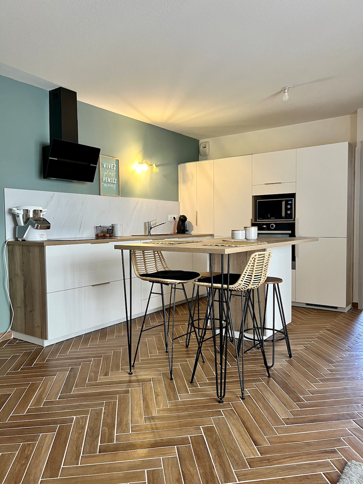Ce logement neuf est unique! Situé en 2ème ligne, à 50 m de la plage et à 200 mètres du centre ville. Il possède un garage fermé + place devant. Terrasse avec vue mer. Il est composé d'un hall d'entrée avec placard et balcon + wc indépendants. Deux chambres spacieuses avec grand placard et balcon. Coin bureau dans l'une des chambres. Salle de douche avec double vasques + machine à laver. A l'étage se trouve le salon et la grande cuisine super équipée ainsi qu'une belle terrasse avec plancha.