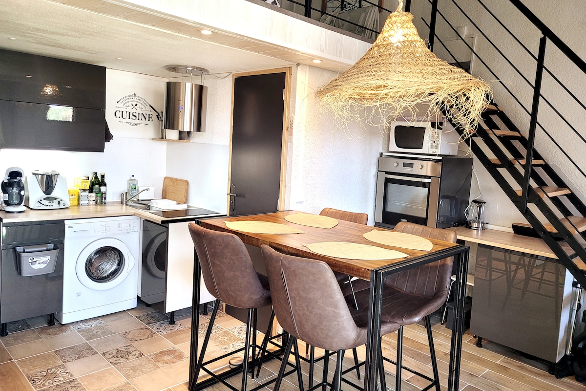 petite maison de vacances avec clim face au lac marin port leucate avec terrasse et parking copropriété très calme pour 3 personnes elle comprends un séjour kitchenette trés équipée, une chambre en rez de chaussée, une salle de bain wc et à l étage une chambre avec nombreux rangements plus une mezzanine coin salon La maison se situe dans un lieu privilegié et calme à proximité des commerces , de la mer et de tous les sites touristiques , corbières ,châteaux cathares collioure , espagne