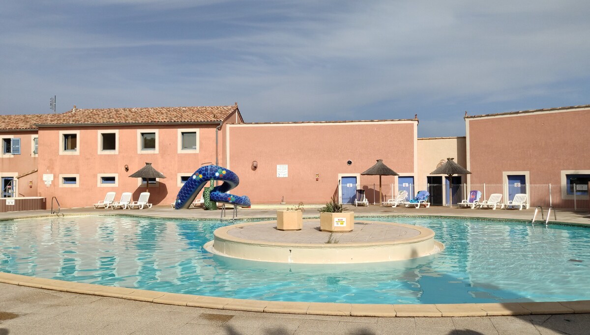 Animaux non admis et strictement non fumeur Dans une résidence de bords de plage (300m) jolie villa de plain pied équipée pour 4 personnes( 1 avec terrasse de 15m2 sans vis à vis au pied de la Grande Bleue…. 1 chambre couchage double et 1 canapé lit type gigogne Cuisine entièrement équipée Lave linge Exposition Ouest .au cœur de Barcarès entourée de restaurants / paillottes et cinémas ( clap ciné) Aqualand, casino et des activités nautiques à 5mn du port et du village, 3mn de Port Leucate