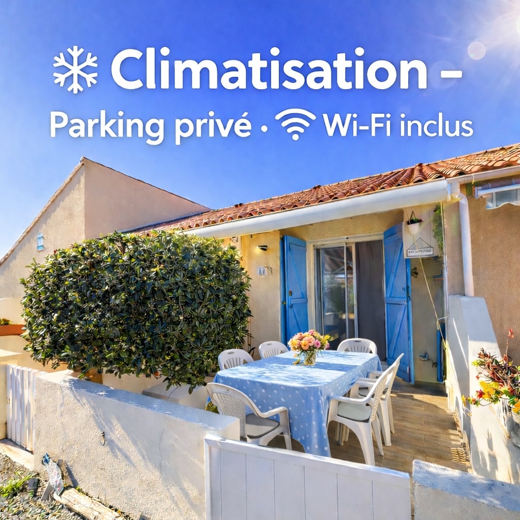 Cadre exceptionnel les pieds dans l’eau à 📍PORT-LEUCATE Jolie petite maisonnette située au bord du lac marin, à seulement 20 m de la petite plage, avec vue magnifique sur les Pyrénées et couchers de soleil 🌅🏝️ — l’endroit idéal pour des vacances relaxantes en bord de mer.  📶 La 4G/5G est timide à Leucate… mais notre WIFI est là 😀 ⚠️IMPORTANT ⚠️ 📅 JUILLET & AOÛT : réservations uniquement du samedi au samedi
