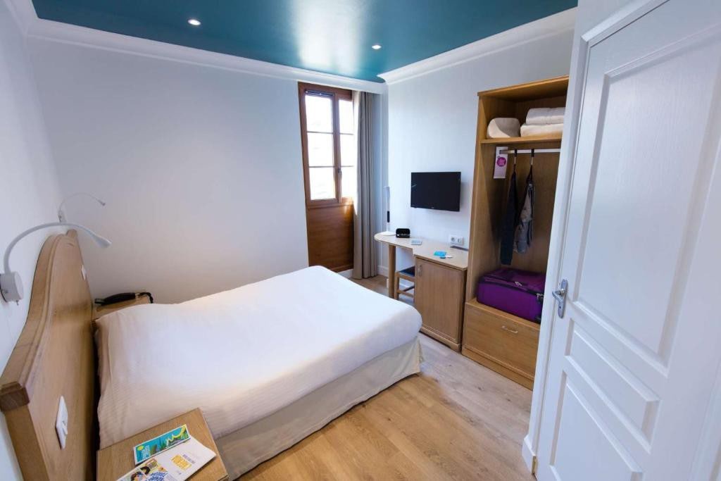 Relax in our cosy and comfortable double studios (18sqm), equipped with a double bed or pull-out bed depending on at conguration or a sofa bed, air-conditioning, soundproof windows, blackout curtains and a at screen TV. You will also enjoy the work area with a phone and wireless internet. For your comfort, the bathroom is equipped with a towel dryer. The kitchen corner will make your stay easier.