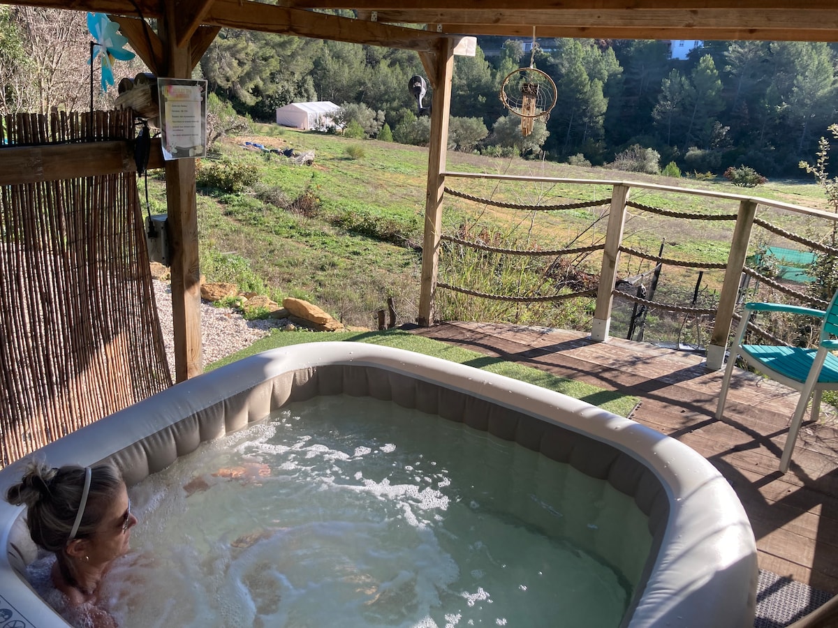 Dépend Bohème 2 à 4pers p'tit dej inclus PISCINE CHAUF Pâques à la Toussaint A l'écart des propriétaires sur 1,5 ha de nature pour séjours d'1 nuit ou vacances de lacher prise où petits et grands ne se perdent jamais de vue. Partagez en extérieur et en tout confort Cuisine repas 4 saisons chauf tout EQUIPE épicier et frigo privatifs Salon Marocain Biblioth Jeux Fléchettes tir a l'arc Ping-pong Baby-foot Badmin Pétanque Parcours Ninja Tyrolien Trampol VELO SPA SAUNA KAYAK PADDLE 5€/pers/act/j