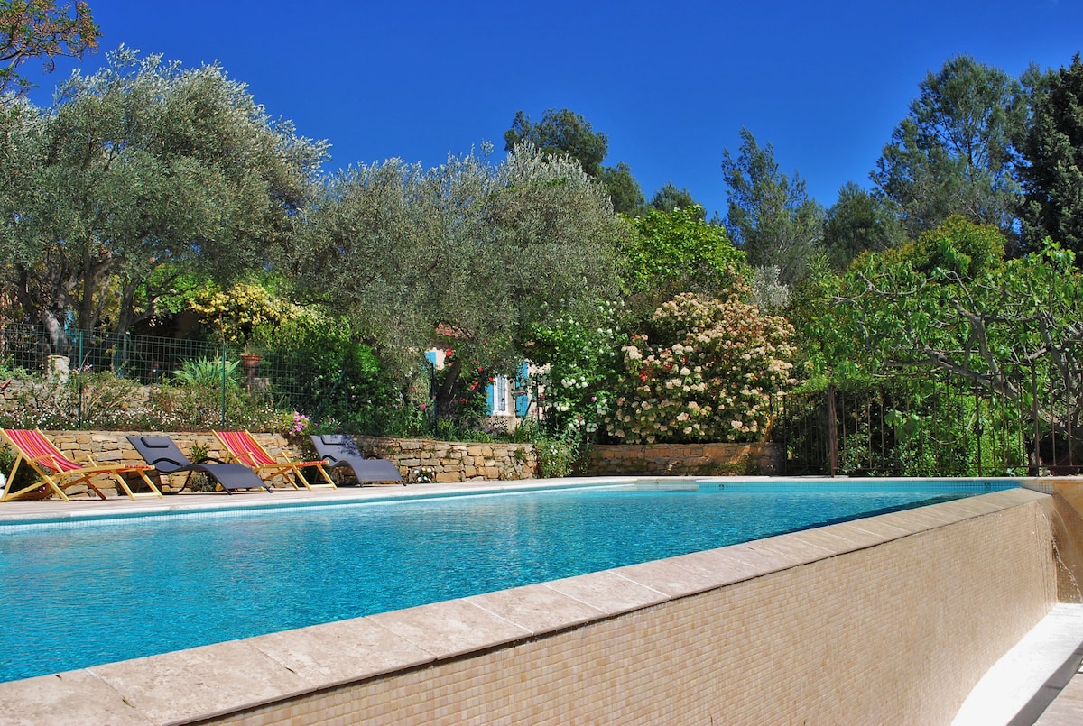 🌿 Venez vous mettre au vert au Mazet Tihou au cœur de la nature provençale. Studio type loft indépendant de 50 m² tout confort : cuisine équipée, salon cosy, lit 160, salle de bain douche italienne en béton ciré. À 8 min du Castellet (plus beau village de France), du Circuit automobile, 15 des plages de Bandol, pour un séjour charme authentique, en longeant les vignes. Profitez des terrasses, de la piscine 🏊 partagée 10x4 chauffée si besoin, de la cuisine d'été et du terrain de pétanque.