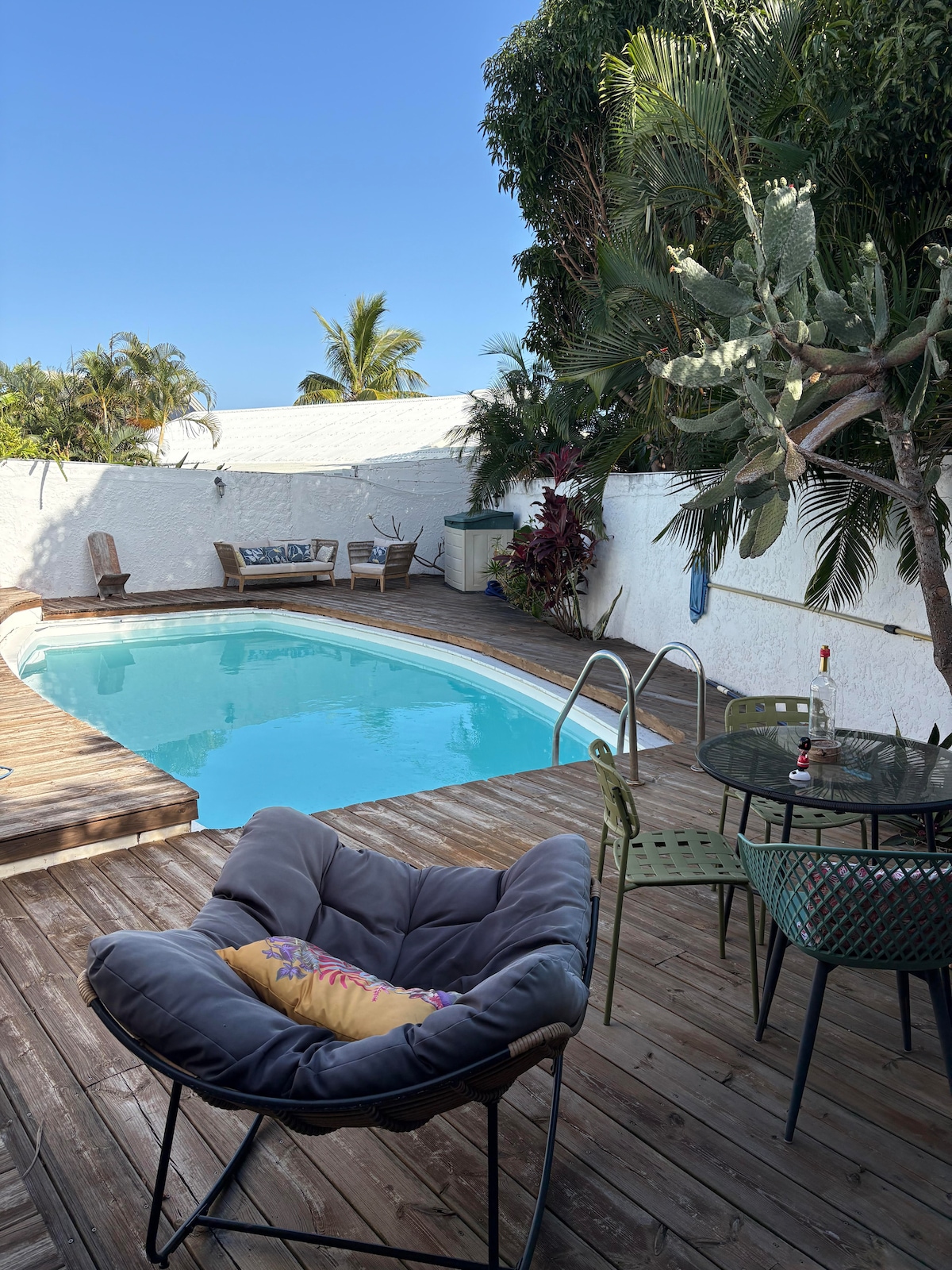 Cette charmante maison bourbon bois vous séduira par ses nombreux atouts. Située dans une impasse et sans vis à vis, vous bénéficierez du calme propice à des vacances en toute tranquillité, . Une grande piscine est à votre disposition pour d'agréables moments de détente et de rafraichissement en famille ou entre amis. Une terrasse ainsi qu'un salon extérieur vous permettrons de savourer apéro et repas autour d'un bon barbecue. 3 chambres tout confort pour un repos bien mérité