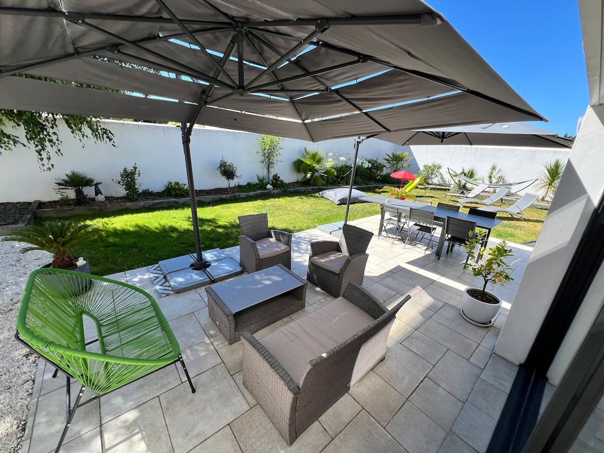 In La Flotte, pleasant recent house in the style of Rétais and very well equipped (4 star rating) for a relaxing holiday, 500m from the beach and 800m from the heart of the village. Quiet area, easy access to all amenities (bus stop in the immediate vicinity) and cycle paths. Bright house of 135 m² with secure parking with the possibility of additional parking nearby. Access to the house with electric gate, private and secure (digicode).
