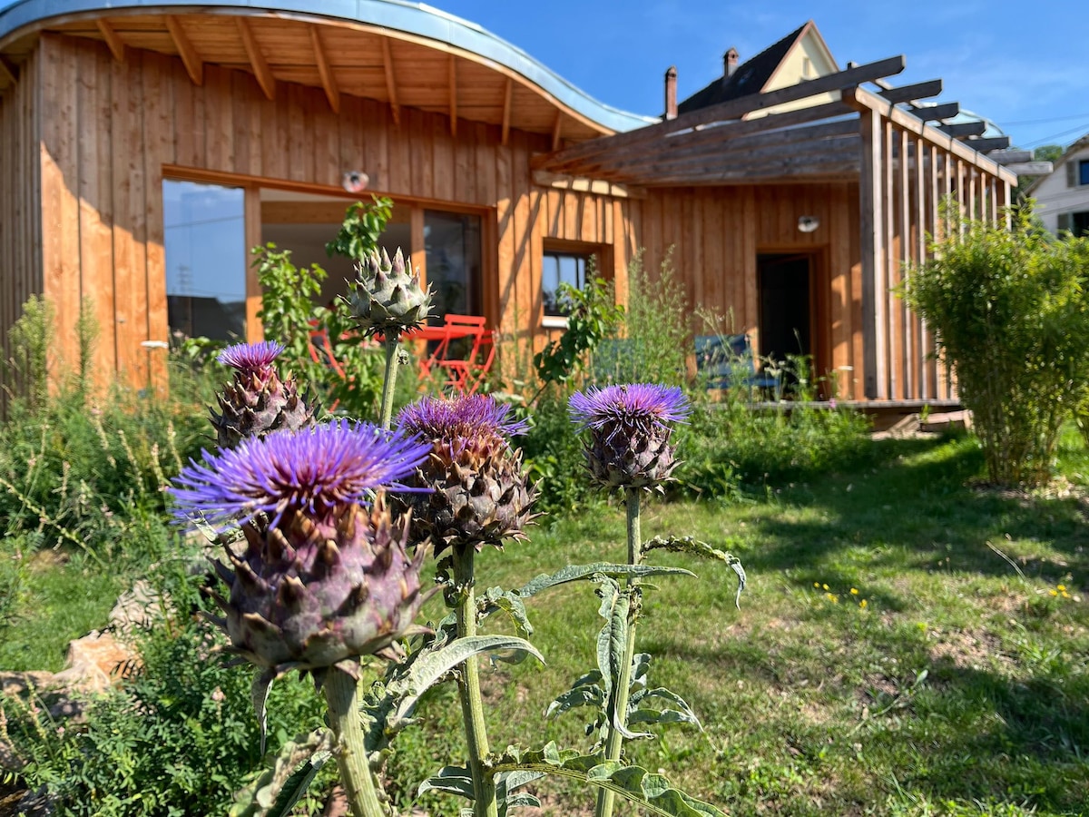 De Geishouse, village de montagne du Parc Régional Ballon des Vosges à 750m, vous pourrez visiter l ' Alsace , faire des randonnées ou simplement vous ressourcer sur place. Cette cabane, semi-enterrée et tout confort, offre une vue imprenable sur le village et le paysage naturel. Elle s'ouvre entièrement sur votre terrasse privée dans le superbe jardin fleuri . Toute l' année vous profiterez des nombreux espaces du jardin et en été de l' ombre des grands arbres au bord du bassin naturel.