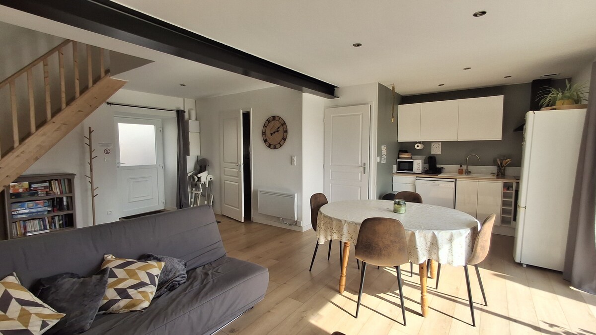 Très jolie maison en duplex entièrement rénovée et décorée avec goût. Située à Condé s/Sarthe proche d’Alençon et Alpes Mancelles, à proximité immédiate des commerces alimentaires, services, pôle universitaire Montfoulon, Parc d’exposition Anova, cinéma, salle de spectacle la Luciole et voie verte. Idéal pour les amoureux de la nature et des balades, les séjours professionnels À seulement 30 min du Mans. Parking et terrasse privatif devant le logement. Quartier calme et paisible.
