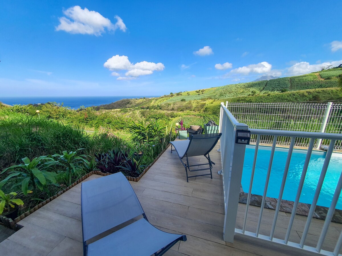 Je suis située sur les hauteurs du Carbet village de pêcheurs du Nord caraïbe. Panorama exceptionnel: à gauche la mer Caraïbe, en face la montagne Pelée et 90° à droite les pitons du Carbet. L'appartement est situé en bas de ma villa, j'habite en haut avec mon fiancé, sans enfant. Nous sommes très discret et n'utilisons jamais la piscine quand il y a des clients. Le quartier est très calme et parfait pour se reposer, admirer le paysage, la nature,méditer, retrouver la Paix intérieure A bientôt