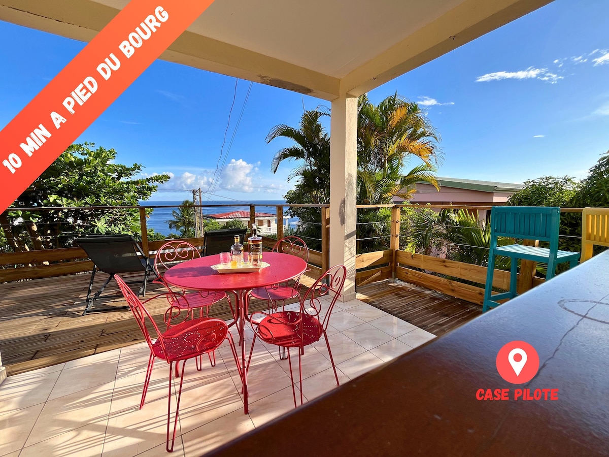Situé sur la côte Caraïbe à Case Pilote, au nord de Fort de France, au sein d'un quartier typique, à quelques minutes à pieds du centre du bourg, sa plage, ses petits commerces, ses restaurants et bars, et d'une crique sauvage où on peut pratiquer le snorkeling, l'appartement pour 2 personnes donne sur une spacieuse terrasse abritée(45m2) avec vue sur la mer et le jardin. L'appartement est composé d'un grand séjour cuisine, une chambre, une salle de bain. Parking privatif. Décoration soignée.